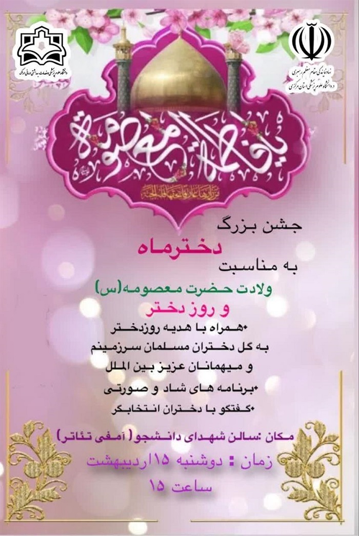جشن بزرگ دختر ماه ، به مناسبت ولادت حضرت معصومه(س) و روز دختر در سالن شهدای دانشجو برگزار می گردد.