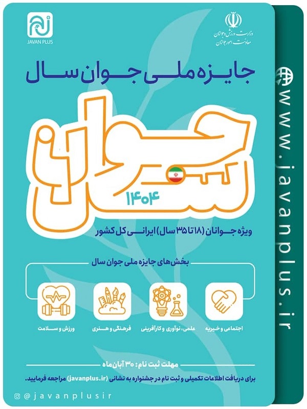 جایزه ملی جوان ۱۷ آبان ۱۴۰۴ | ۱۳:۲۴ کد : ۵۶۱۱۵ اطلاعیه ارسال به دیگران نام شما ایمیل شما ایمیل دریافتکننده ارسال انصراف تعداد بازدید:۱۱۷۳ جایزه ملی جوان سال ۱۴۰۴ فراخوان شرکت در جایزه ملی جوان سال ۱۴۰۴ منتشر شد.